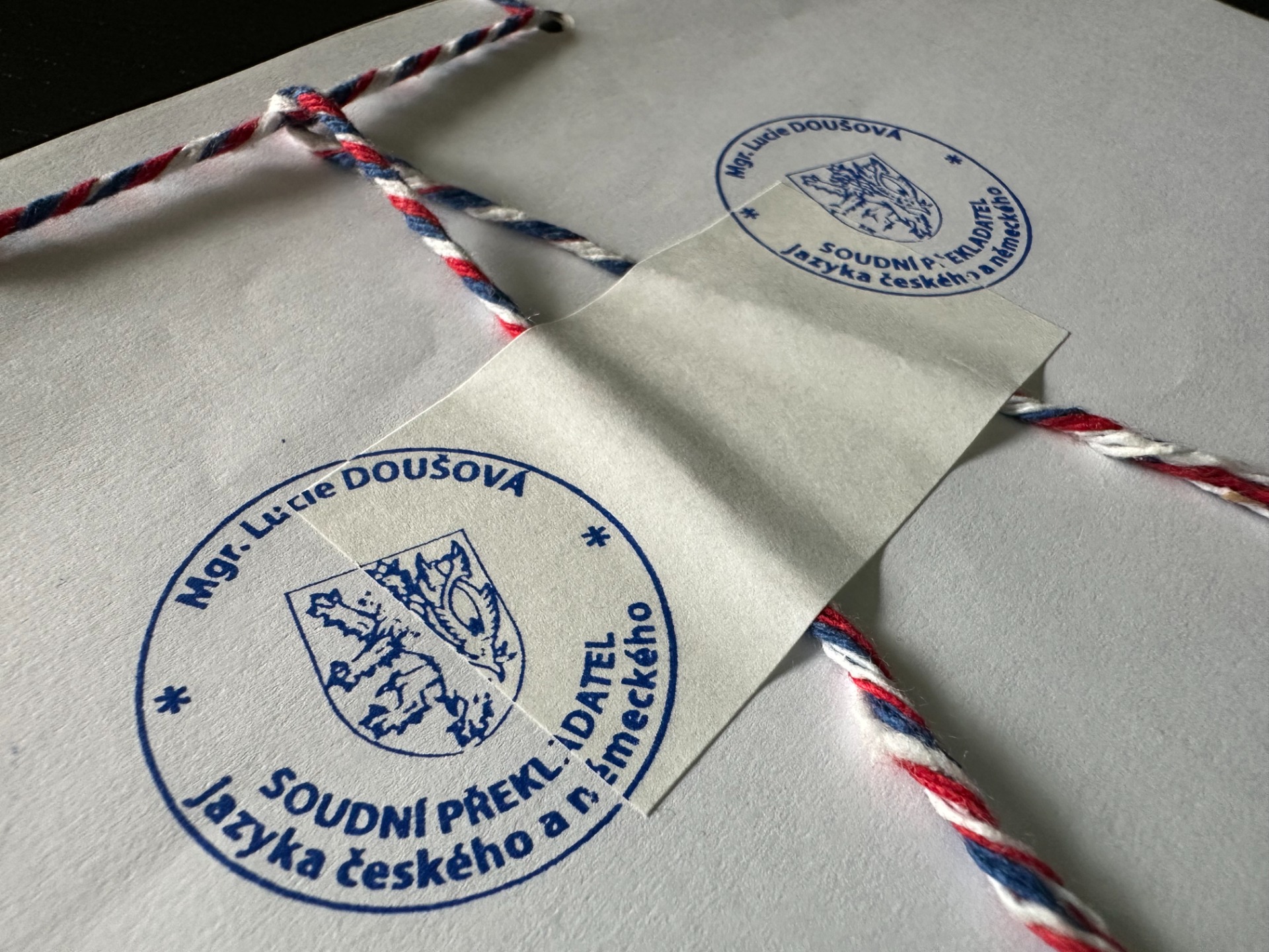 Hotový překlad je na opatřen tlumočnickou doložkou. Ta obsahuje potvrzení o shodě překladu s originálem, podpis soudního překladatele a otisk jeho kulatého úředního razítka se státním znakem.